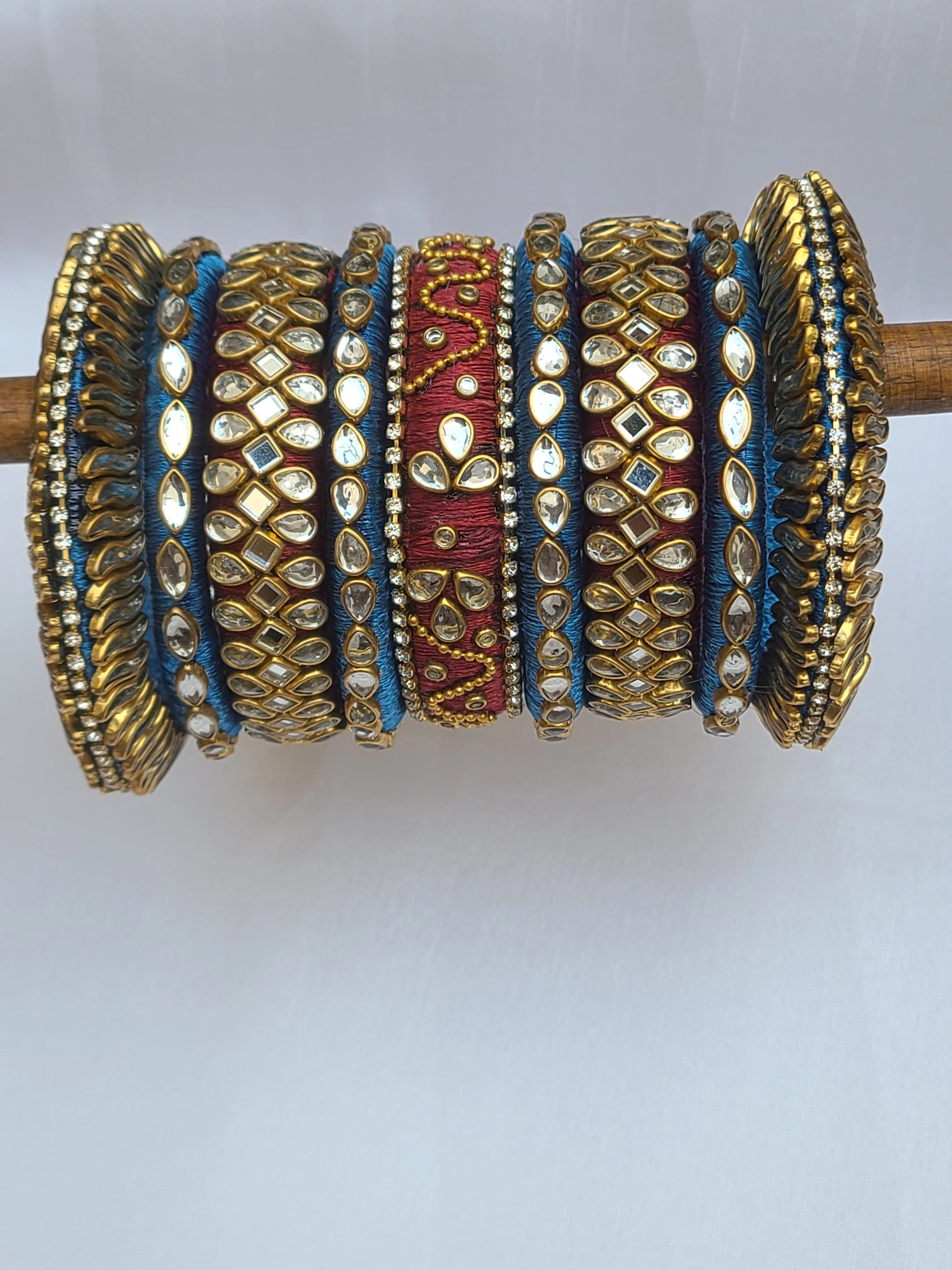 Fancy Silk Thread Kundan Bangles ( Multi Colours)