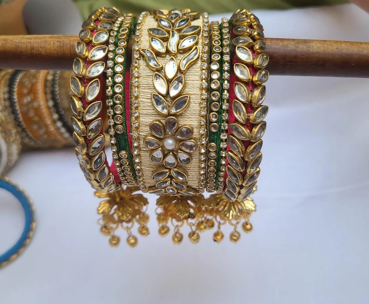Multi Colours Fancy Silk Thread Kundan Bangles